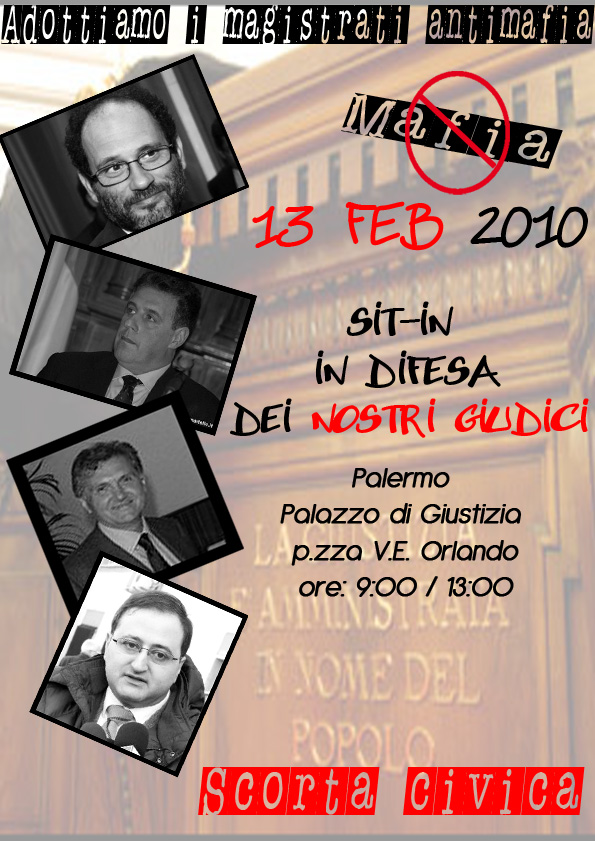 Sabato 13 febbraio alle ore 9 si svolgerà presso il Palazzo di Giustizia di Palermo in Piazza V. E. Orlando il sit-in in difesa dei magistrati antimafia.