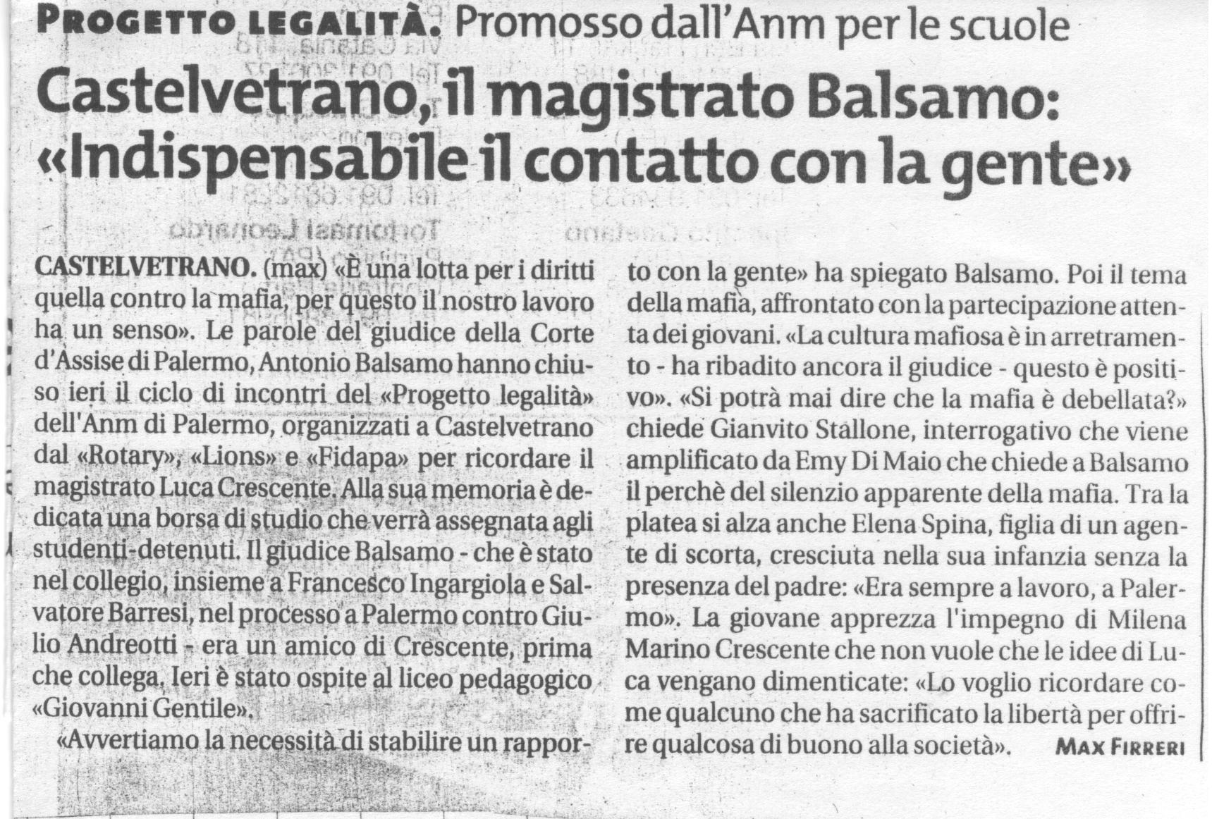 Castelvetrano, il magistrato Balsamo: "Indispensabile il contatto con la gente"