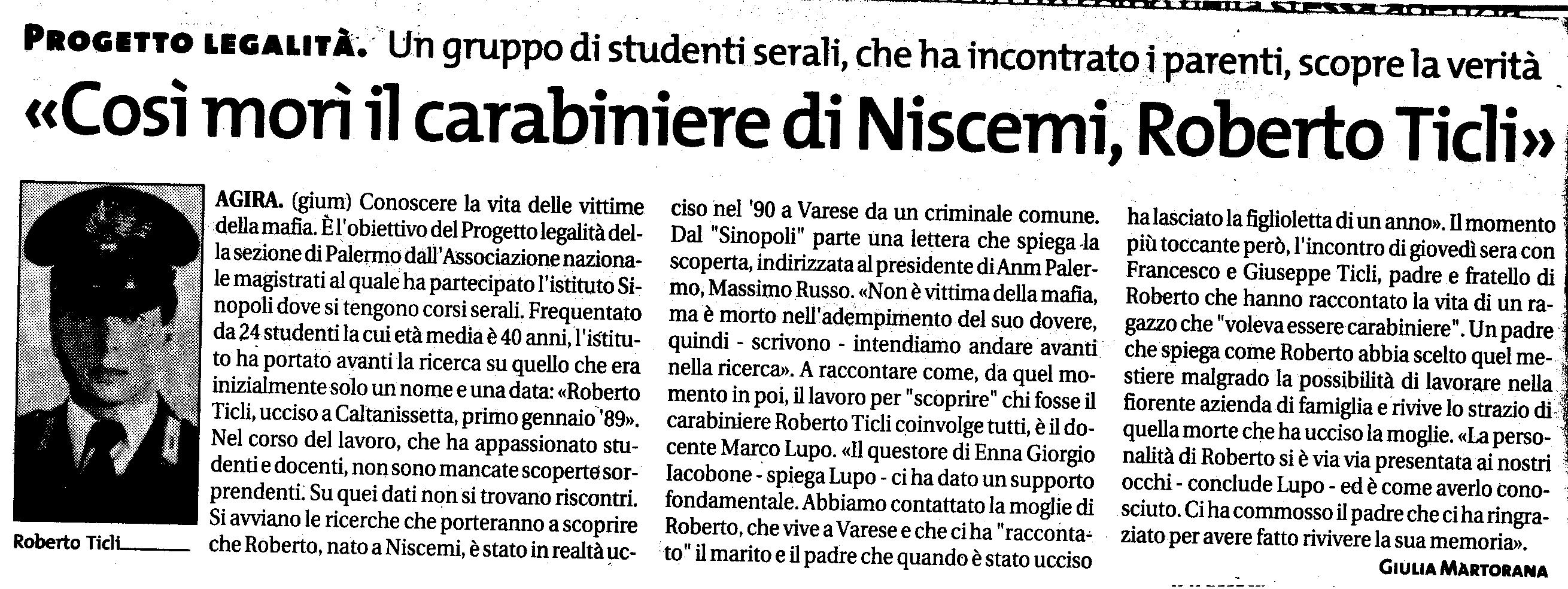 "Così morì il carabiniere di Niscemi, Roberto Ticli"