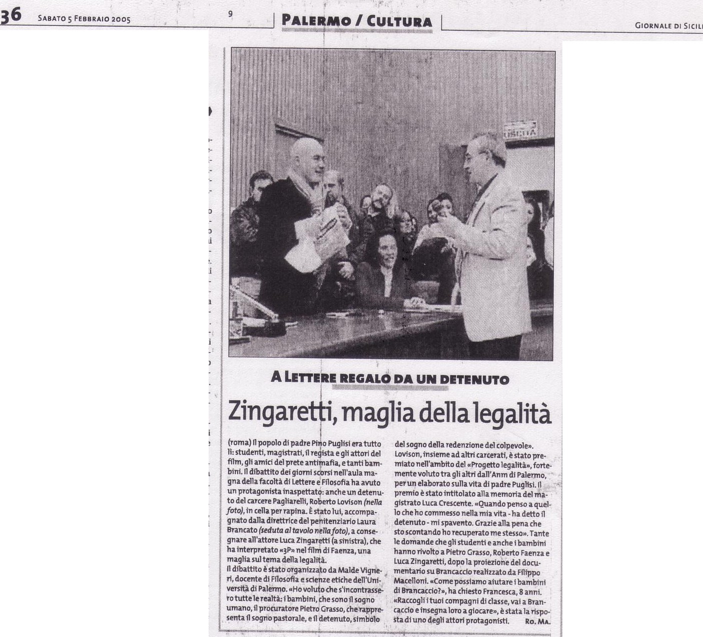Zingaretti, maglia della legalità. A Lettere regalo da un detenuto.