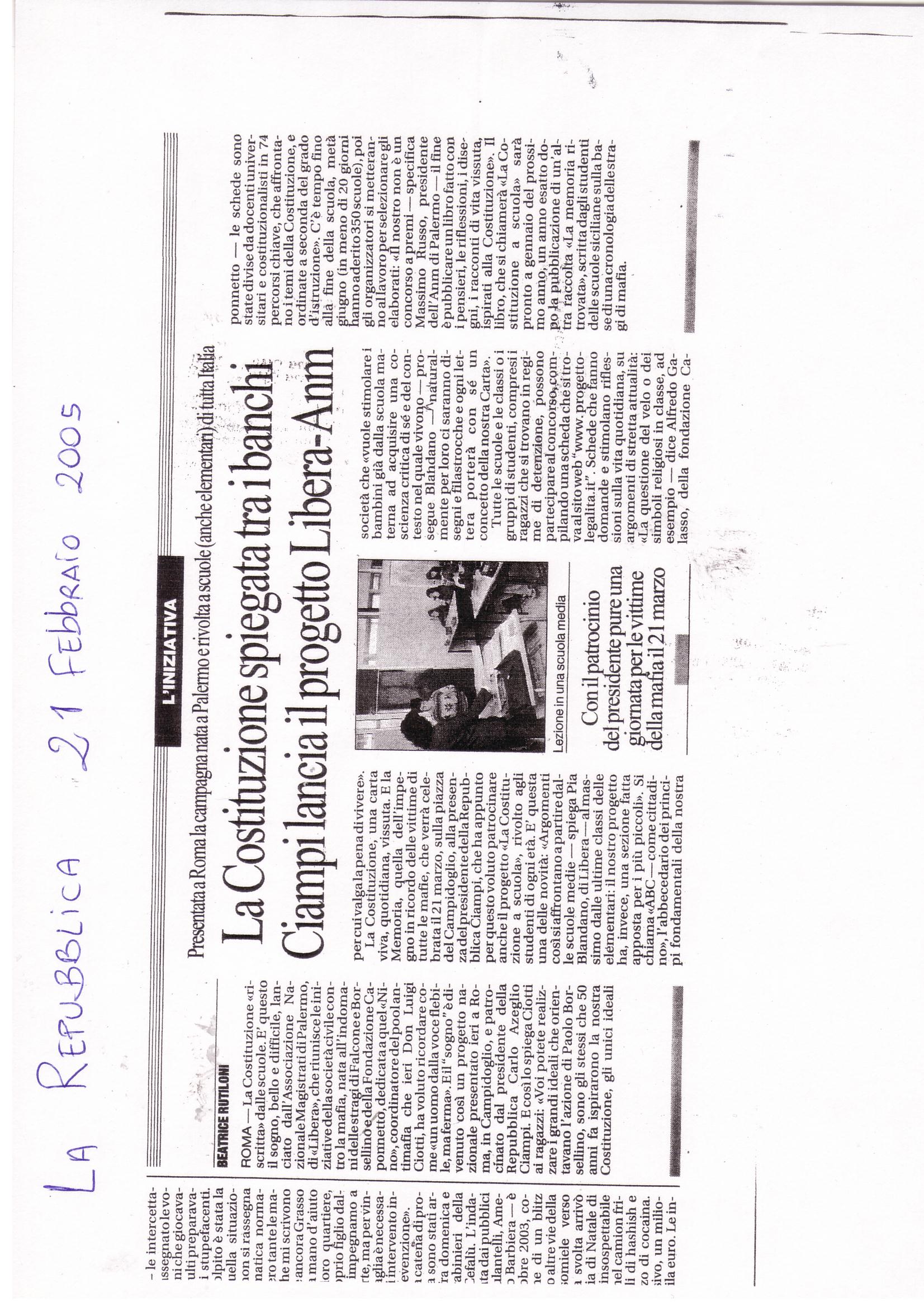 La Costituzione spiegata tra i banchi. Ciampi lancia il progetto Libera - ANM