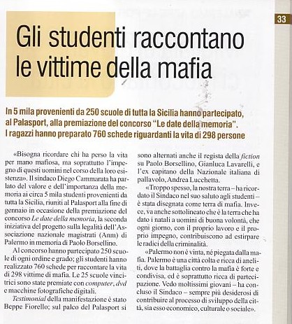 In 5 mila provenienti da 250 scuole di tutta la Sicilia hanno partecipato, al Palasport, alla premiazione del concorso "Le date della memoria".