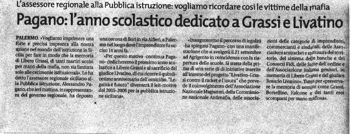 Pagano: l'anno scolastico dedicato a Grassi e Livatino