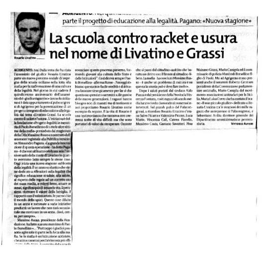 La scuola contro racket e usura nel nome di Livatino e Grassi