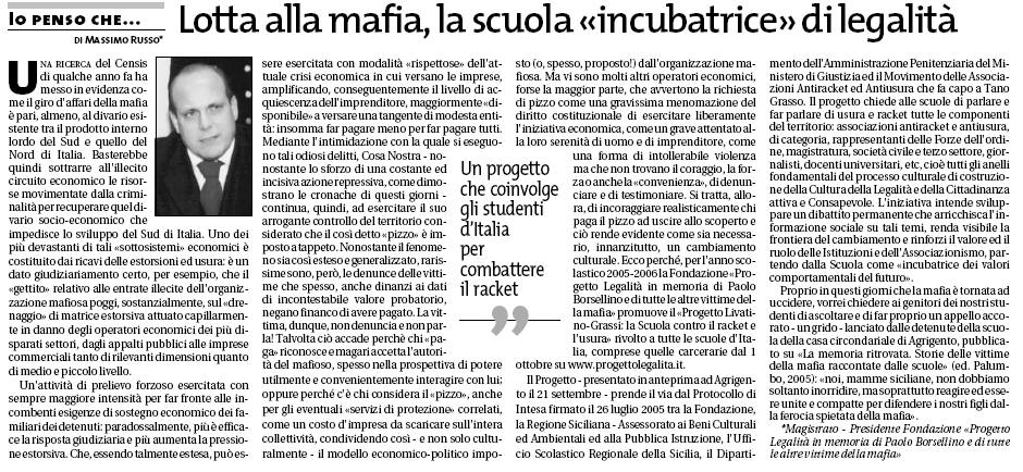 Lotta alla mafia, la scuola «incubatrice» di legalità