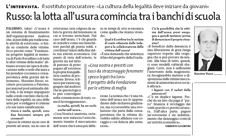Russo: la lotta all'usura comincia tra i banchi di scuola