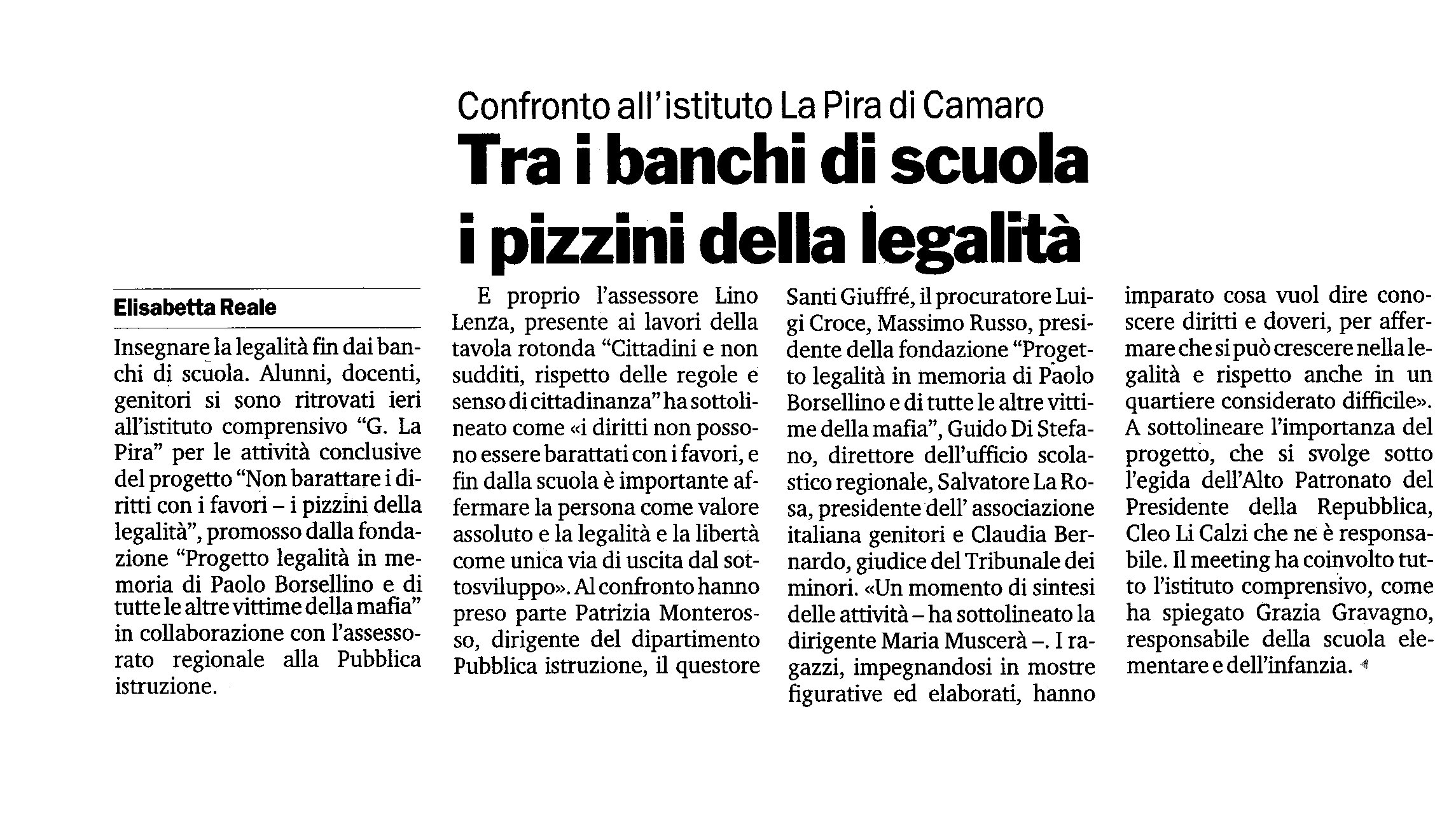 Progetto Legalità - Fondazione Onlus - In memoria di Paolo Borsellino e di tutte le altre vittime della mafia