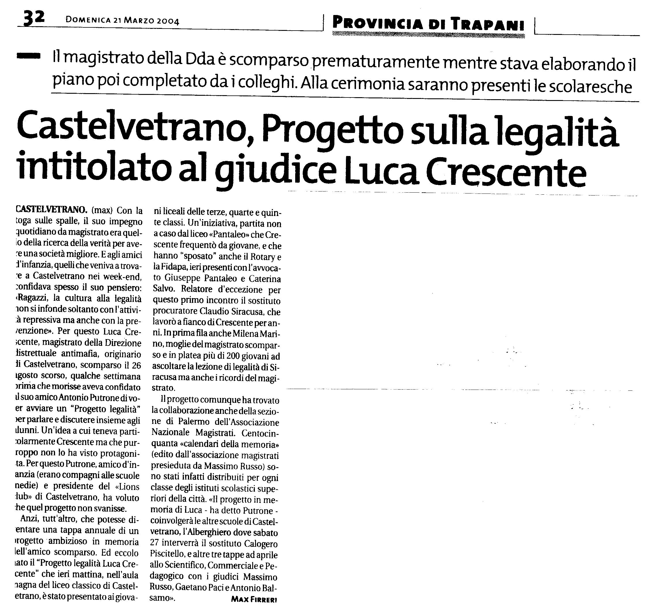 Castelvetrano, Progetto sulla Legalità intitolato al giudice Luca Crescente
