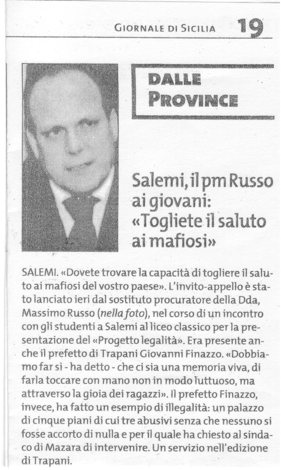 Salemi, il pm Russo ai giovani: “Togliete il saluto ai mafiosi”